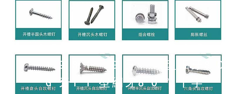 B:球面圓柱頭; C:圓柱頭; F(K):沉頭; H:六角頭;HW:六角頭帶墊圈; O:半沉頭; P:平元頭; R:半元頭;PW:平元頭帶墊圈; T:大扁頭; V:蘑菇頭;④ 螺釘牙型 A:自攻尖尾(日標第1種)疏 外扳擰:六角、六角法蘭面、六角凸緣、六角花形等;內扳擰:一字槽、十字槽H型、十字槽Z型、十字槽F型、四方槽、復合槽、內花鍵、內六角花形、內三角、內六角、內12角、離合器槽、六葉片型槽、高扭矩十字槽等。3、
