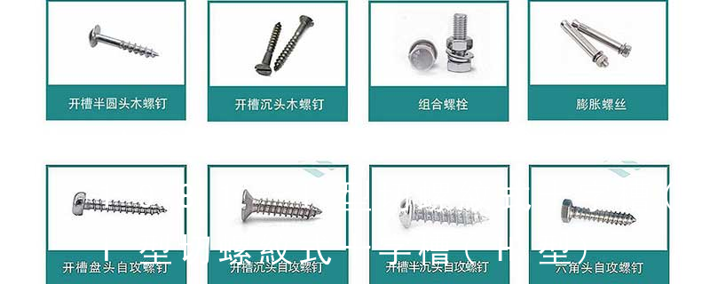 1、開槽圓頭木螺釘 GB 99-86 DIN96;2、開槽沉頭木螺釘 GB 100-86 DIN97;3、開槽半沉頭木螺釘 GB 101-86 DIN95;4、六角頭木螺釘 GB 102-86 DIN571;5、十字槽圓頭木螺釘 GB 950-86 DIN7996;
